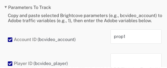Parameters carry additional data and are passed with events. Every Brightcove parameter that will be recorded must be created as a Traffic Variable in Adobe Analytics. The parameter named will then be used inside the Players module. This allows Brightcove parameters to be passed to Adobe Traffic Variables. Review the list of parameters below to determine which ones you want to capture.