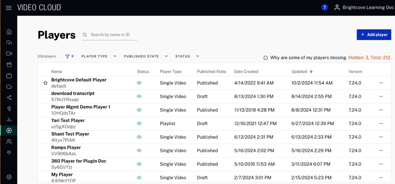 Deleting a player removes it from your account and cannot be undone. To delete a player in the Players module: