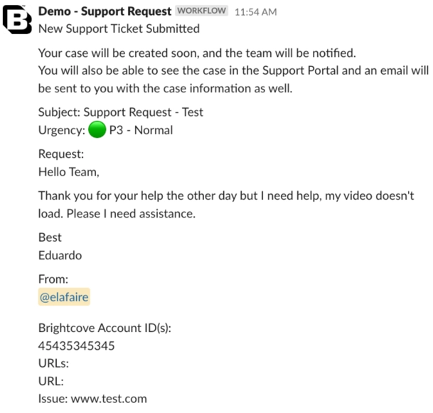 To open a case with Brightcove Support using the Brightcove shortcut through Slack, follow these steps: